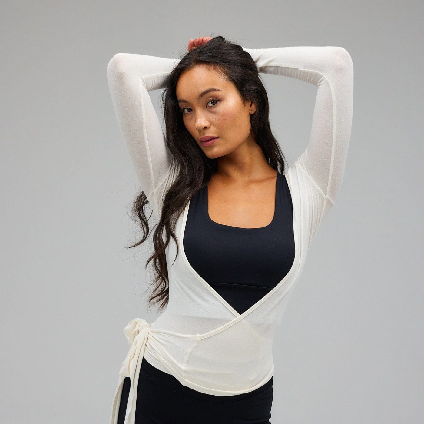 La matière seconde peau épouse les formes sans marquer, et la coupe croisée flatte toutes les silhouettes sans comprimer.