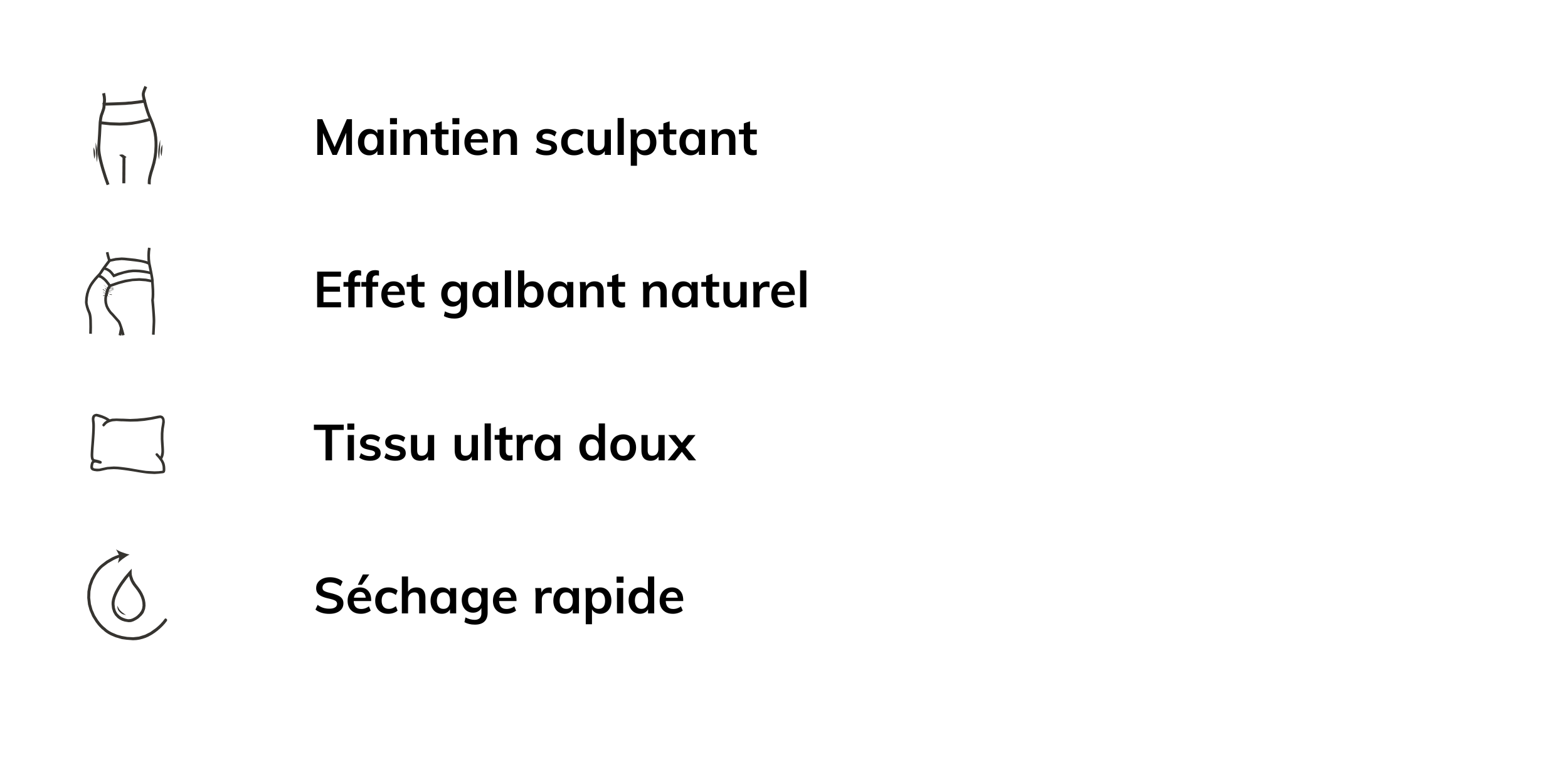 La matière gainante épouse vos formes et lisse les courbes pour une silhouette plus ferme dès l’enfilage.